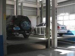 在立體停車庫的建設中,往往會遇到因場地狹小無法采用自走式坡道的情況,為了將汽車搬運到不同平層中存取車輛,就需要采用垂直升降的汽車專用升降機。這樣可以替代汽車進出車庫的斜坡道,大大節(jié)省空間,提高車庫利用率。這種汽車專用升降機常用于地下或屋頂及建筑自走式車庫存取汽車的搬運。汽車升降機的出入口與前方道路之間,應保留兩個車長的距離,或保留可設置回轉臺的空間,但分設入口與出口方式的升降機在入口一側保留一個車長的空間。當汽車出入升降機,并且非有倒車方式駛出時,原則上應設置回轉車臺。汽車出入口的寬度,應大于搬運汽車寬度0.5M以上,且不小于2.25米,其高度應在1.8米以上,且不小于適停車輛高度加0.1米。